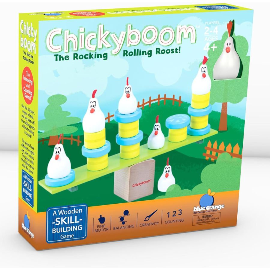 Award winning ChickyBoom by Blue Orange games is a fun, competitive and cooperative balancing game that helps build your child's hand-eye coordination, fine motor skills and counting.