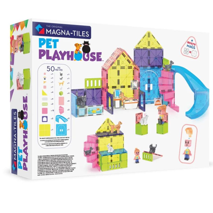 Step into a world of pawsome fun with the Magna-Tiles® Pet Playhouse 50-Piece Magnetic Construction Set! The Original Magnetic Building Brand invites kids to create the ultimate play paradise for their furry friends – a playful puppy, curious cat, bouncy bunny, and their adventurous doggy companion.