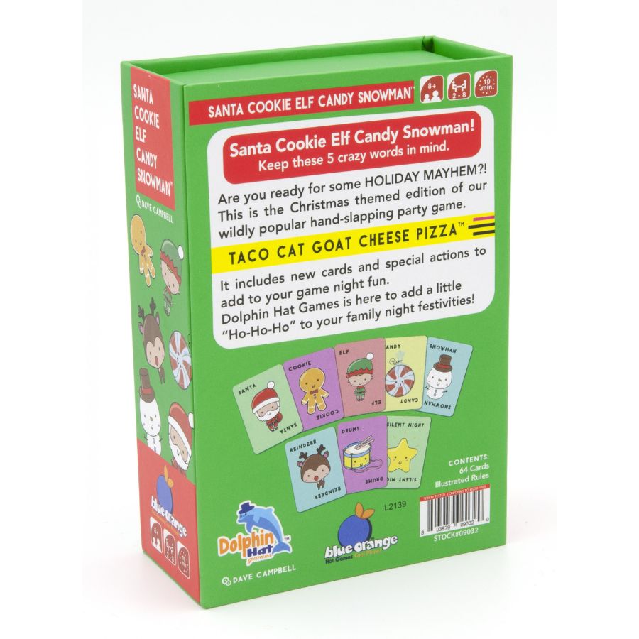 Get ready for some holiday mayhem with Blue Orange Games Santa Cookie Elf Candy Snowman, the festive Christmas edition of the wildly popular Taco Cat Goat Cheese Pizza party game! This hilarious, fast-paced hand-slapping card game is packed with laughter, friendly competition, and quick-thinking fun — perfect for families, friends, and festive gatherings.