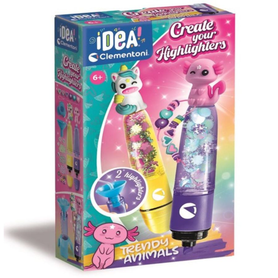 Let kids design, build, and decorate their very own highlighters with the Clementoni Create Your Highlighters Trendy Animals kit! This engaging Italian-designed craft set includes everything children need to assemble 2 vibrant highlighters—coloured inks, fun animal characters, and a variety of decorative accessories.