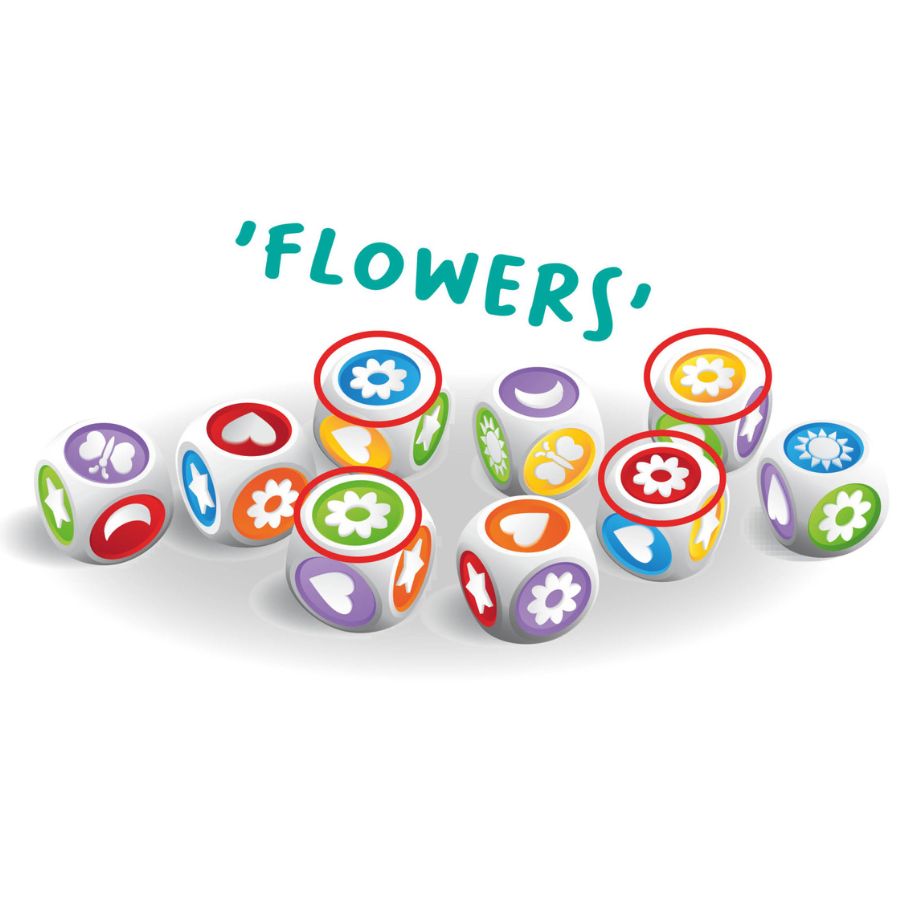 Each player receives an equal number of dice from the 12 included in the game. Everyone rolls at the same time. As the dice land, players scan the table and race to identify which shape or colour appears the most.