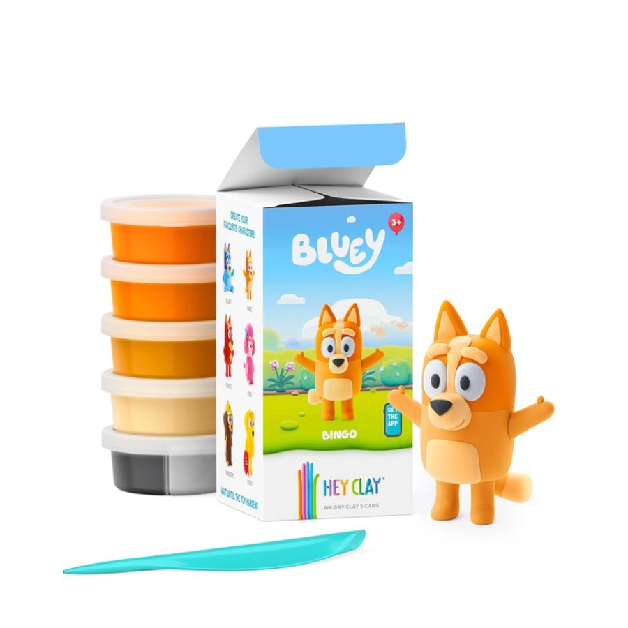 Bring the cheerful Bingo from Bluey to life with the Hey Clay Bingo Single Character Set, a colourful, hands-on creative activity perfect for children aged 3 Years +. This engaging kit includes 5 cans of soft, lightweight, air-dry clay that is non-toxic, non-sticky, and stain-free, making it ideal for little artists eager to explore clay modelling.