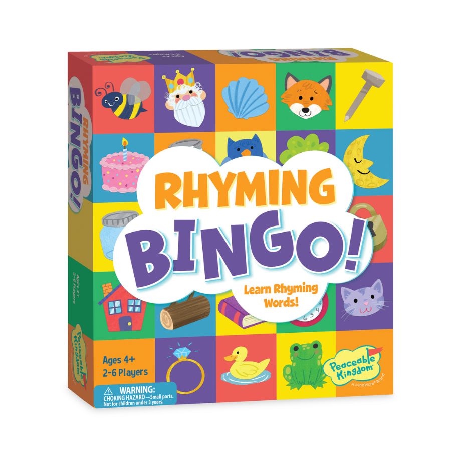 Make learning to rhyme fun and engaging with the Peaceable Kingdom Rhyming Bingo Board Game!