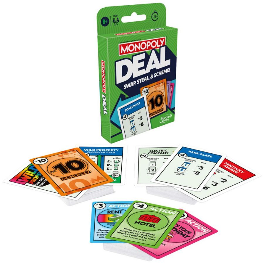 Get ready to deal, steal, and outsmart your opponents with Hasbro Gaming’s Monopoly Deal—the fast-paced card game that packs all the excitement of classic Monopoly into just 15 minutes of play! Perfect for family game nights, holidays, and on-the-go fun, this quick and strategic card game is loved by kids, teens, and adults alike.