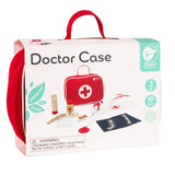 Packed neatly into a bright red soft carry case, this set includes 19 wooden medical tools, such as a stethoscope, thermometer, syringe, bandage, and more, for endless pretend-play checkups.