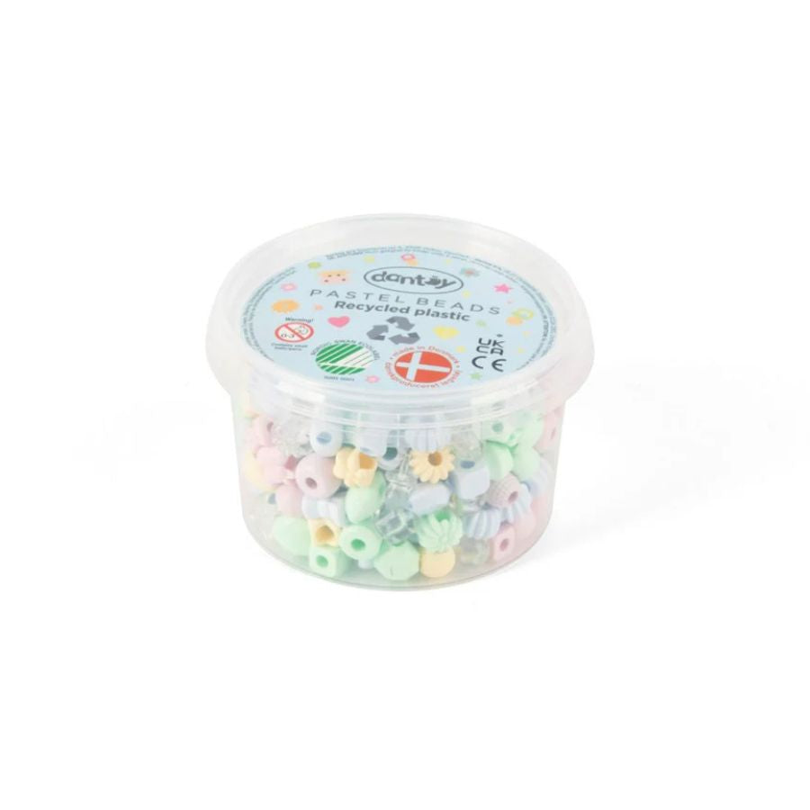 Inspire hours of imaginative play with the Dantoy Pastel Recycled Beads Small Tub. This eco-conscious bead set features 280 beautiful pastel beads, perfect for designing one-of-a-kind bracelets, necklaces, and handmade creations.