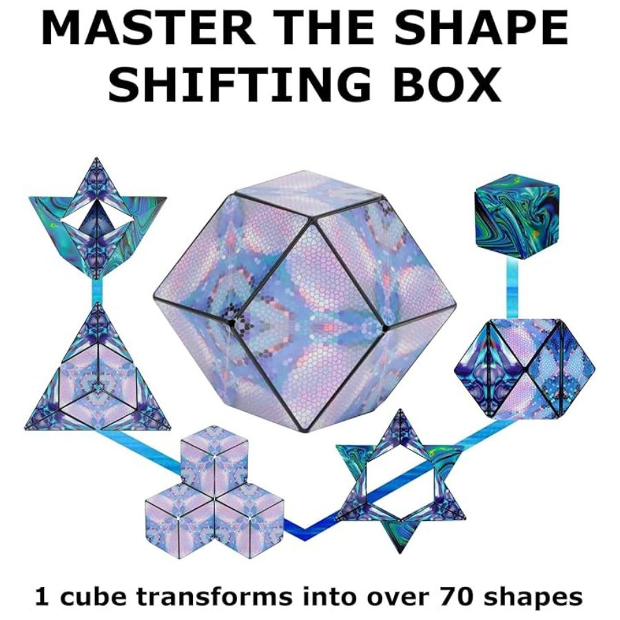 Designed for curious minds of all ages, each Shashibo cube features 36 rare earth magnets that snap, fold, flip, and transform into over 70 unique geometric shapes — all while strengthening spatial reasoning and problem-solving skills.