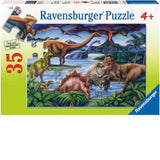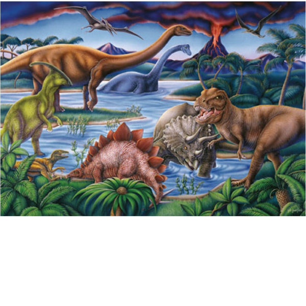 The is the perfect puzzle for any little dinosaur fan featuring a T-Rex, Stegosaurus, Triceratops and more trampling through the prehistoric world.