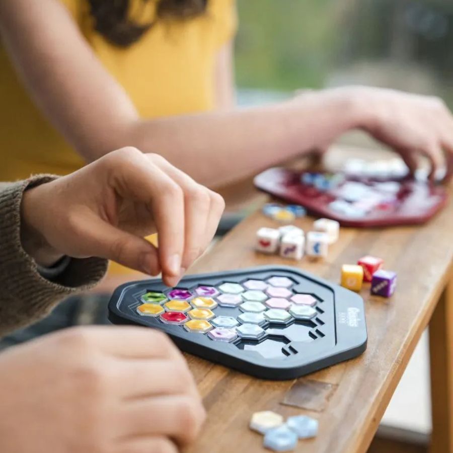 With 5 levels of difficulty and over 10,000 possible puzzle combinations, Genius Gems keeps kids and adults engaged while sharpening concentration, flexible thinking, and spatial insight.
